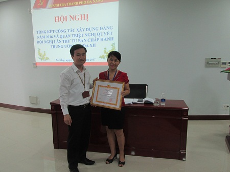 Đ/c Trần Huy Đức, Bí Thư đảng ủy, Chánh thanh tra tặng Giấy khen cho 01 chi bộ đạt danh hiệu trong sạch vững mạnh tiêu biểu (Hình 1) và 05 cá nhân là đảng viên hoàn thành xuất sắc nhiệm vụ năm 2016 (Hình 2)