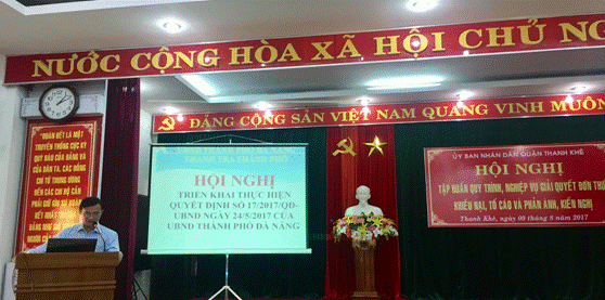 Thực hiện Kế hoạch số 766/KH-UBND ngày 07 tháng 6 năm 2017 của UBND quận Thanh Khê về việc tổ chức Hội nghị tập huấn quy trình, nghiệp vụ giải quyết đơn thư khiếu nại, tố cáo và phản ánh, kiến nghị trên địa bàn quận Thanh Khê năm 2017.