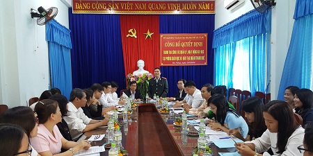 Ông Mai Tấn Linh, Chánh thanh tra Sở Giáo dục và Đào tạo, Trưởng đoàn thanh tra đang công bố Quyết định thanh tra