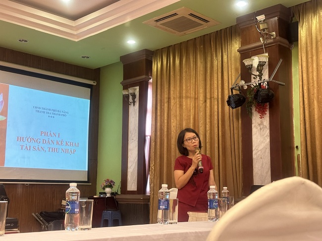 Tại buổi tập huấn, đồng chí Nguyễn Thị Hồng Ân - Phó Chánh Thanh tra thành phố Đà Nẵng đã trình bày các nội dung trong kê khai tài sản, thu nhập; tập trung vào giải đáp các vướng mắc phát sinh trong việc triển khai kê khai và công khai bản kê khai tài sản, thu nhập; làm rõ, thống nhất cách hiểu, cách kê khai để các cơ quan, địa phương, đơn vị triển khai được thống nhất và đồng bộ.