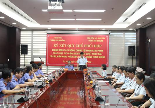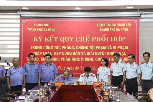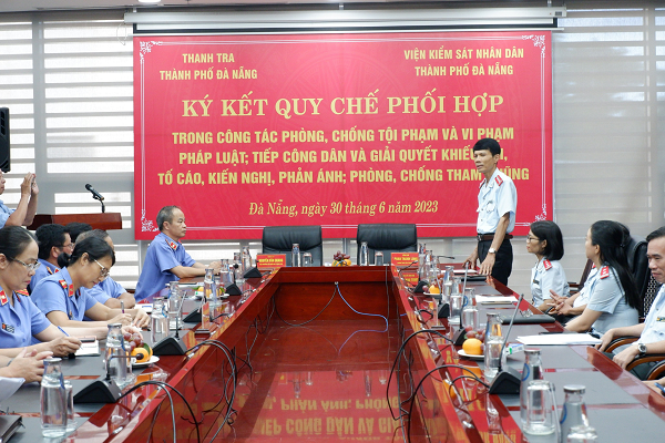 Để tăng cường cơ chế phối hợp, trao đổi thông tin giữa hai cơ quan, góp phần đấu tranh phòng chống tội phạm, giữ vững an ninh chính trị, trật tự an toàn xã hội trên địa bàn thành phố Đà Nẵng, chiều ngày 30/6/2023, tại Trung tâm Hành chính thành phố Đà Nẵng, Thanh tra thành phố Đà Nẵng và Viện kiểm sát nhân dân thành phố Đà Nẵng tổ chức ký kết Quy chế phối hợp trong công tác phòng, chống tội phạm và vi phạm pháp luật; tiếp công dân và giải quyết khiếu nại, tố cáo, kiến nghị, phản ánh; phòng, chống tham nhũng.