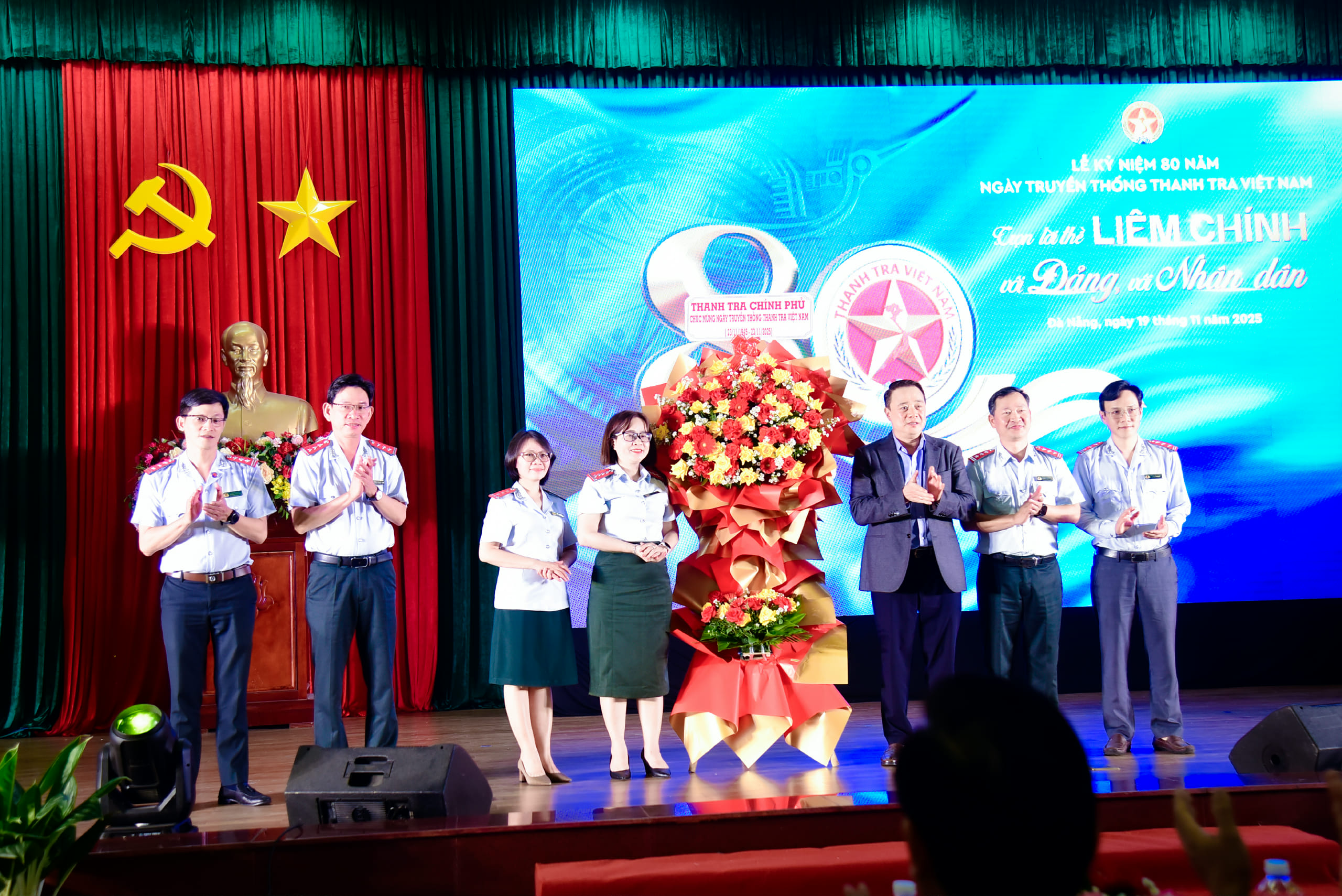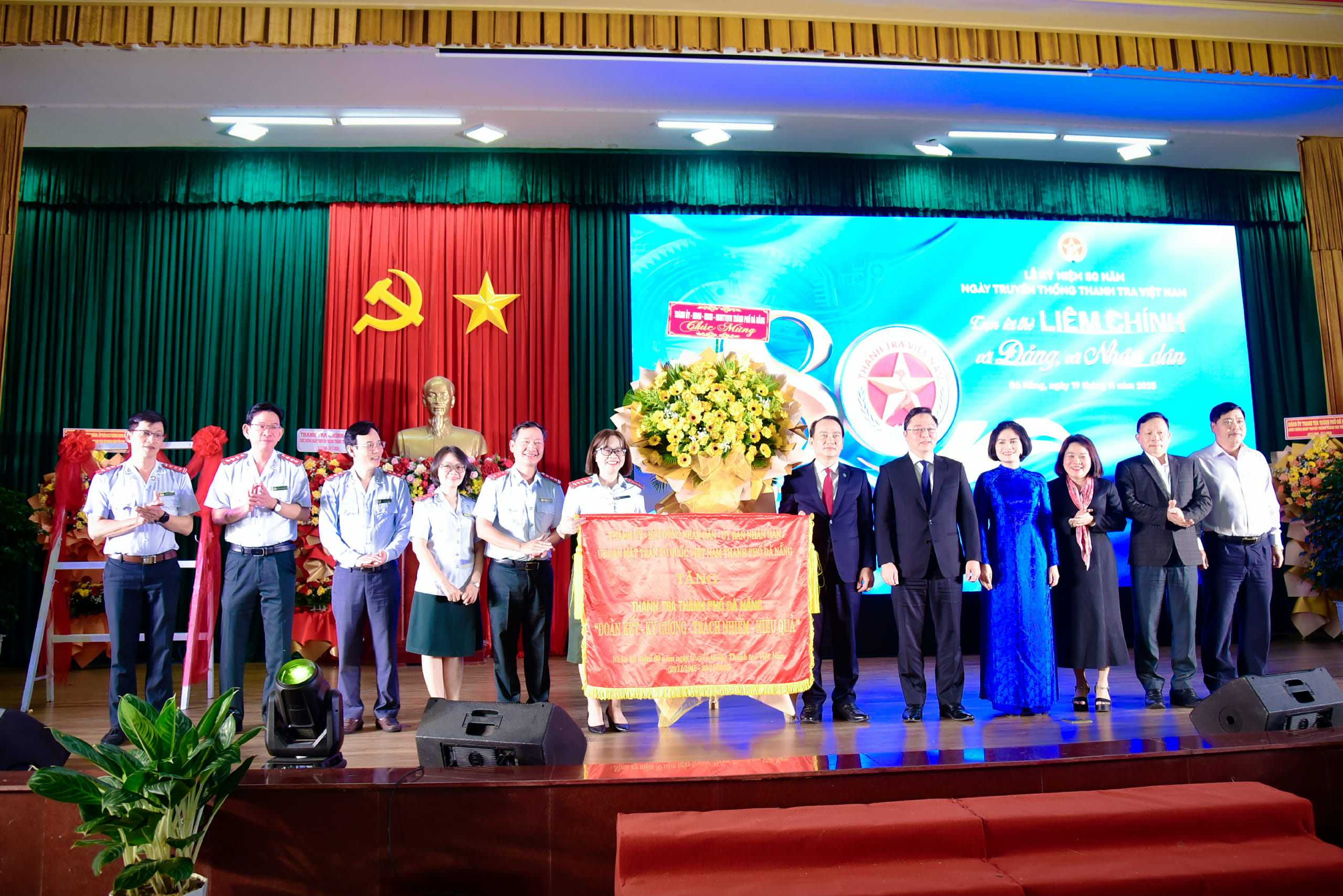 Lãnh đạo thành phố cũng tặng hoa và bức trướng mang dòng chữ “Thanh tra thành phố Đà Nẵng: Đoàn kết - Kỷ cương - Trách nhiệm - Hiệu quả”, thể hiện sự trân trọng và đánh giá cao nỗ lực của lực lượng Thanh tra trong sự nghiệp xây dựng và phát triển thành phố.